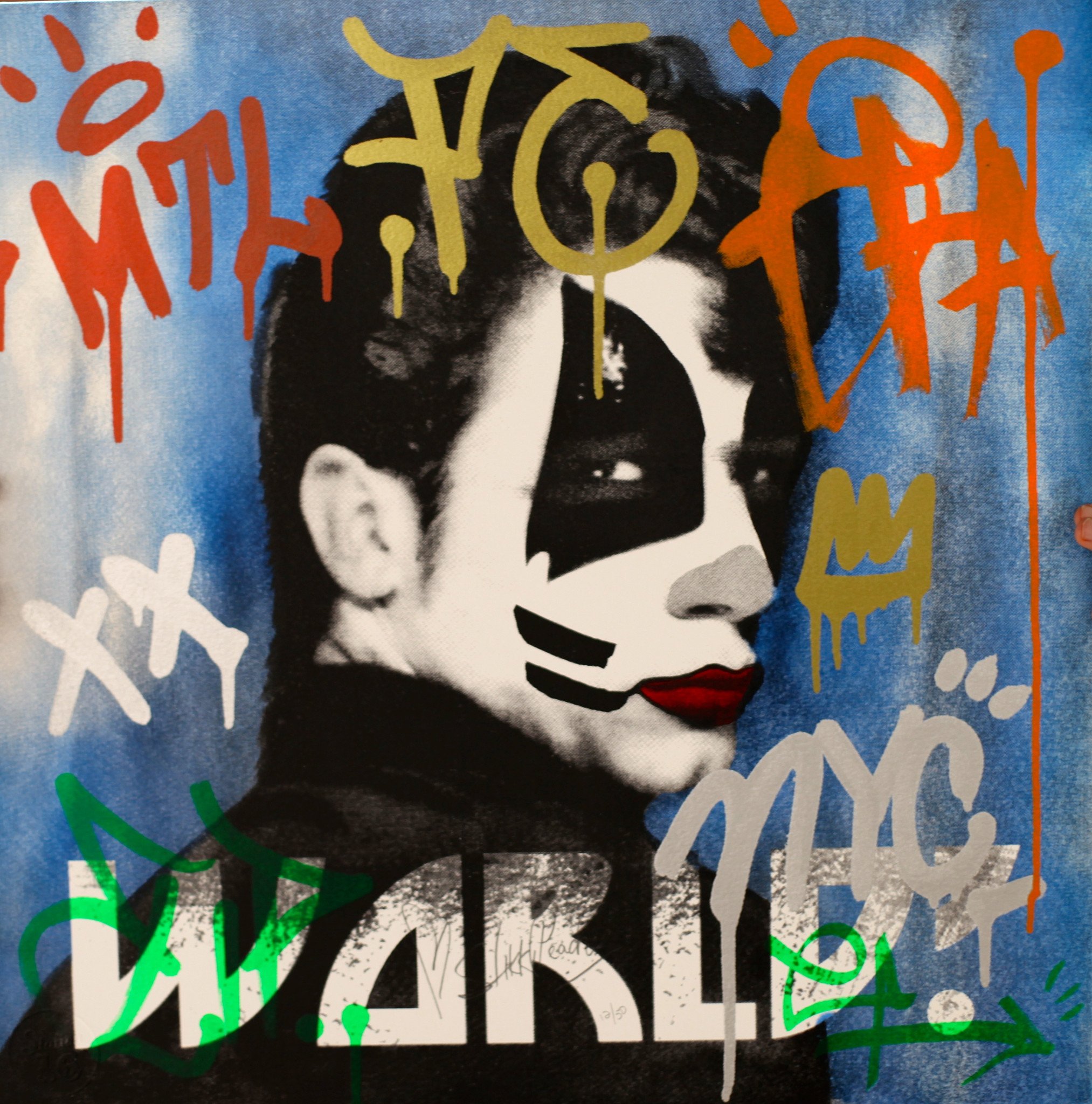 This limited-edition, silkscreen print consists of 34 colors and spells out the classic tagline of Stikki Peaches, “What if Art Ruled the World?”