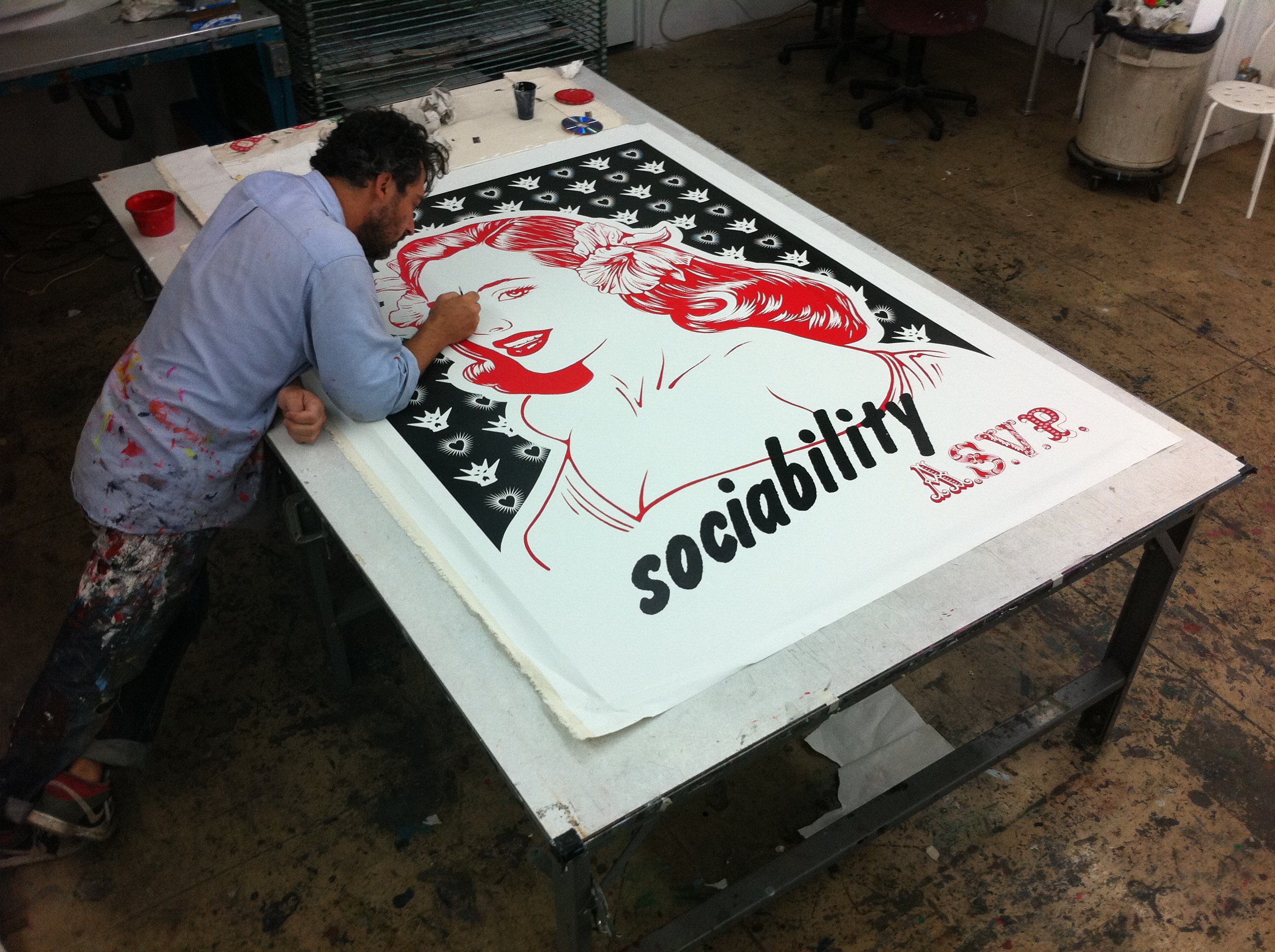 ASVP is a Brooklyn-based artistic collaboration between Simon Grendene and Victor Anselmi. They are best known for creating graphic images with nods to advertising, pop and comic book culture, juxtaposed with layers of organic abstraction. A combination of painting and print making remain central to their approach.