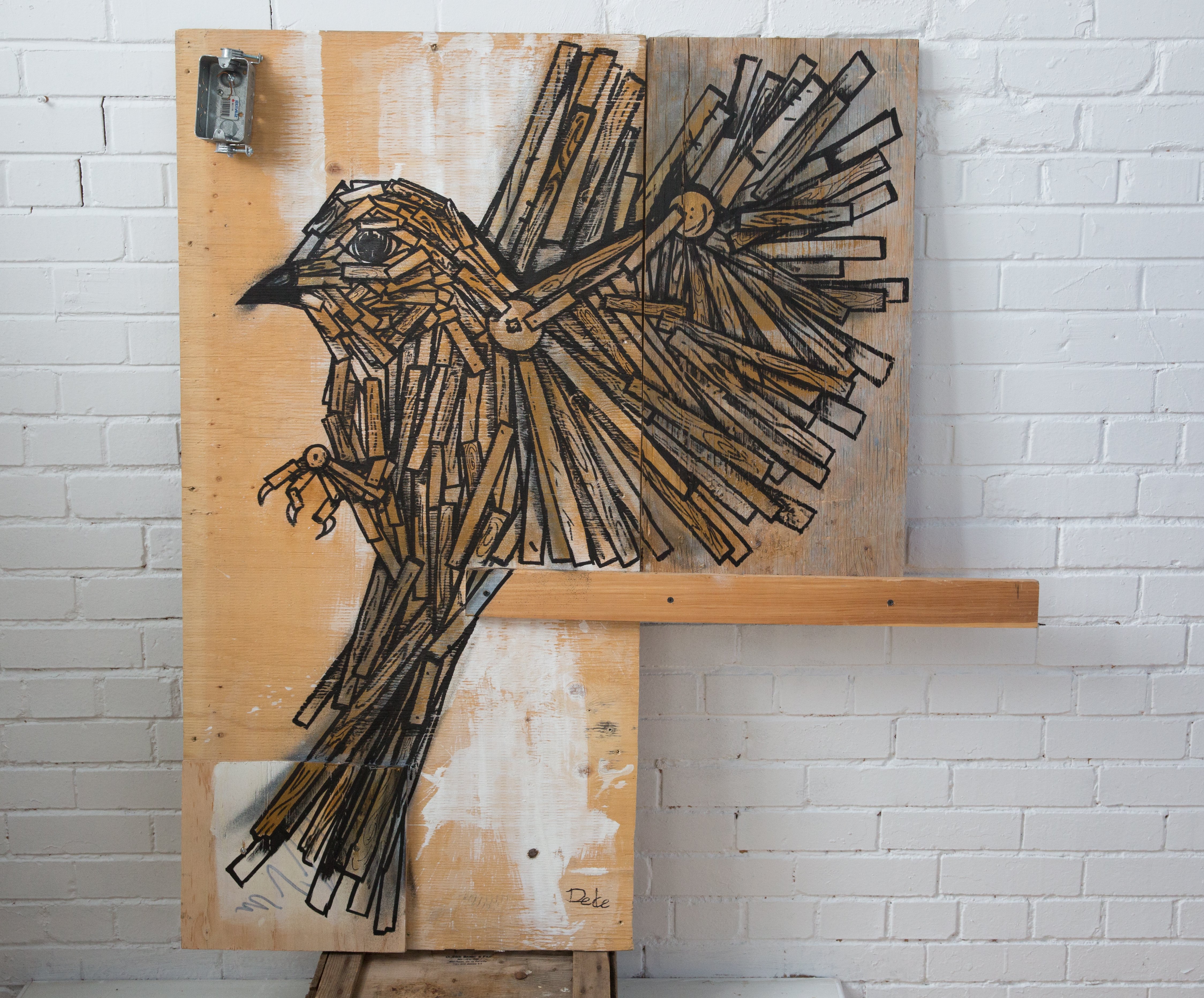 Dede’s inspiration stems from the urban landscape, and from the social and the personal questions it evokes. As he gathers stories and structures hidden within the ever-changing city streets, Dede examines and questions the man-made lifestyle people create for themselves, and reflects on absurd, paradoxical human existence. While visiting new places, a tension between Home and Away often rises and influences both his studio and outdoor pieces. Outdoor locations and found objects often serve as a point of departure for the pieces he creates.