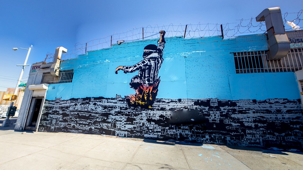ICY (born 1985) and SOT (born 1991) are artists from Tabriz, Iran, currently residing in Brooklyn, New York., the two brothers started doing stencils in 2006, they have been contributed to Iranian and international urban art culture through their Murals , interventions, video and installations that depicting human rights, capitalism, ecological justice, social and political issues, Their work appears on walls and galleries throughout the Iran, USA, Germany, China, Norway, and globally.They transcend their histories of artistic and political censorship by using public art to envision a world freed from borders, war and violence