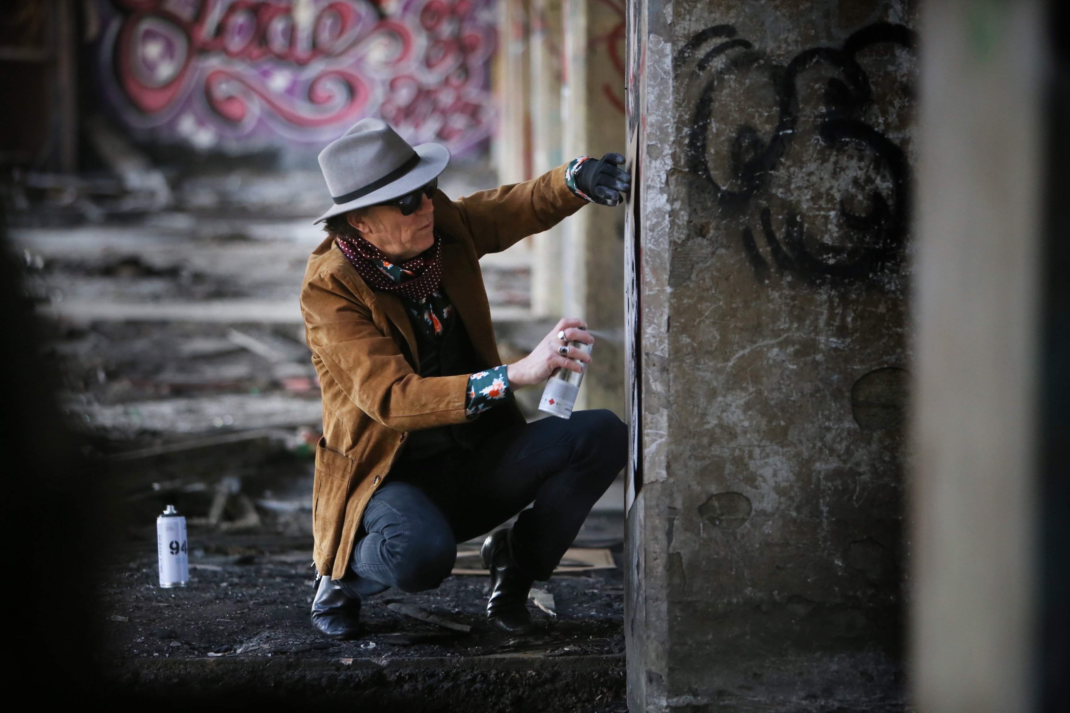 A true originator who helped spark what is now known as “Street Art” when he sprayed his first stencil series across the city of Tours, France one night in 1982, the self-taught Jef Aerosol has continuously rocked the streets with his oversized portraits and helped define a new public art nomenclature with other French artists like Blek Le Rat, Miss Tic, and Speedy Graphito. Steadily from the ’80s to the ’10s Aerosol has cut and sprayed stunning portraits of his heroes; cultural icons who stand undiminished by the hype.
