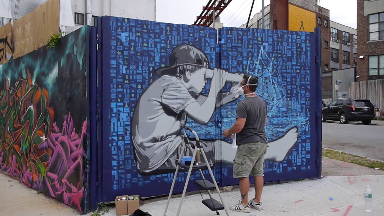 Falling somewhere in between simplistic and photorealistic, Iurato’s multi-layer stencils offer a distinctly clean and illustrative aesthetic. While his murals have adorned neighborhoods along the east coast United States for years, Joe’s more recently become noted for the unique placement and photography of miniature painted wood cutouts in public spaces. Utilizing the outdoor environment to create site-specific installations, Iurato creates windows into a narrative formed by personal experiences.