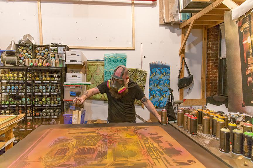 Logan Hicks is a New York-based artist known for using multiple layers of stencils to achieve photorealistic imagery. Hicks works both on canvas and in large-scale mural, with permanent stenciled murals in Miami, Baltimore, New York, Tunisia, Istanbul, Amsterdam, Paris and beyond.
